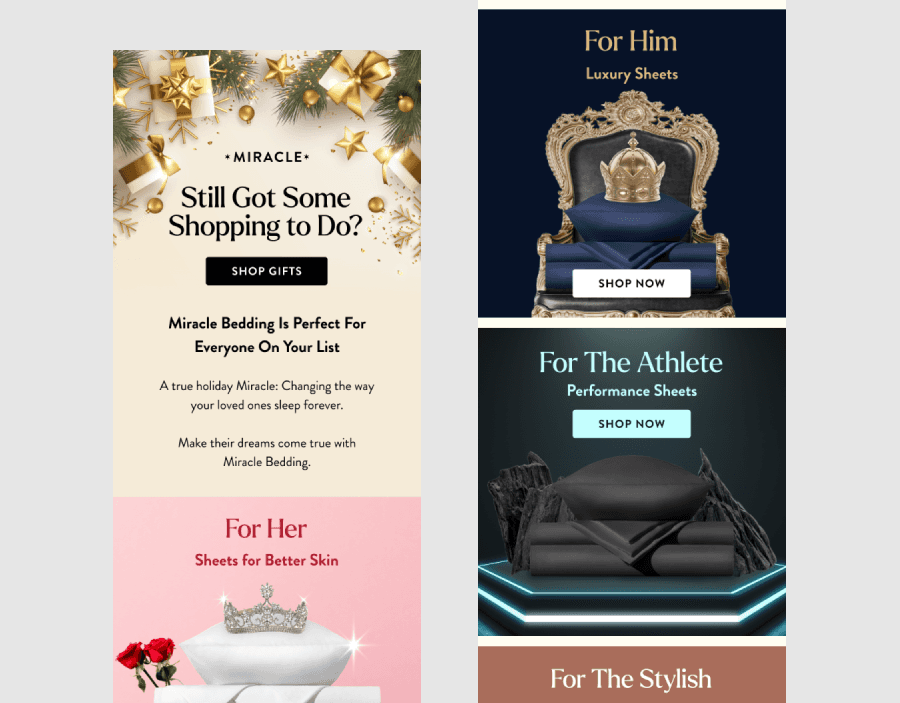 - Visual Storytelling: Designed striking email layouts, combining product imagery with engaging copy to boost conversions.
