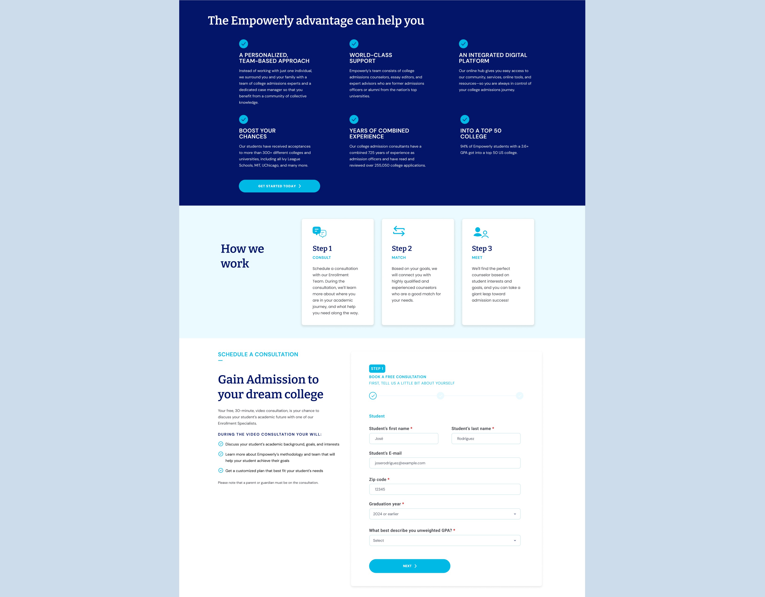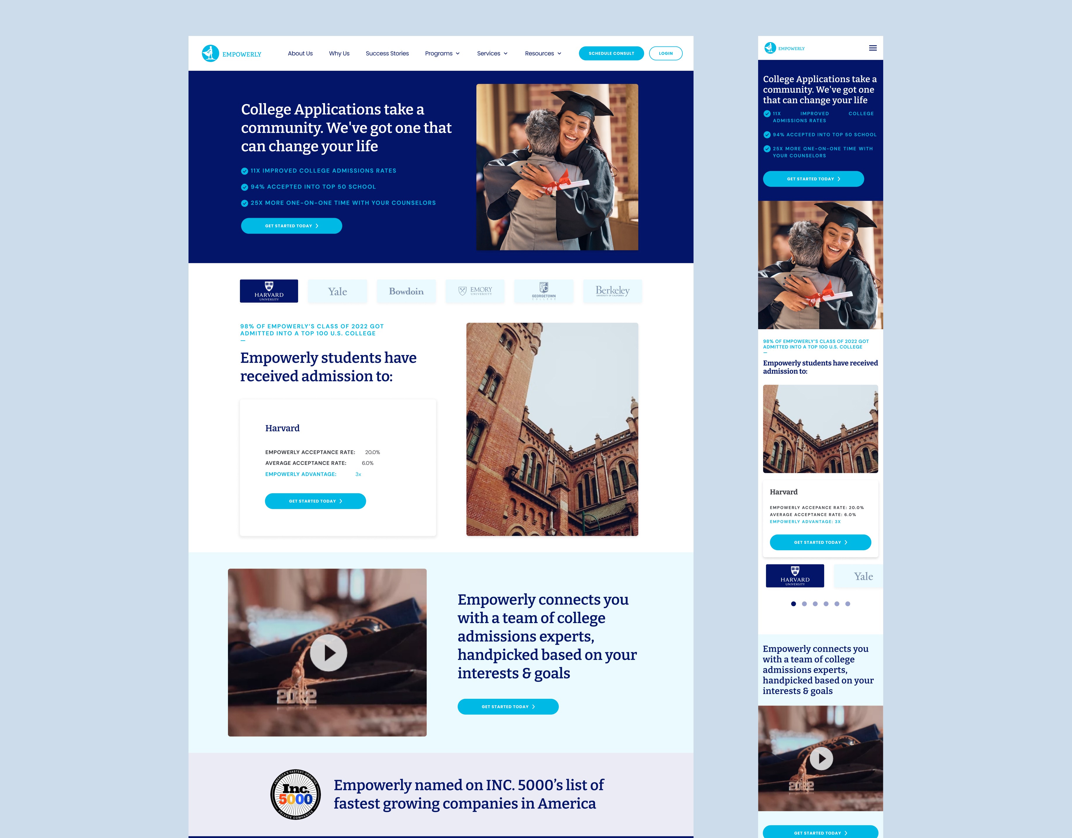 At Empowerly, I took the lead in redesigning their website and crafting CRO-focused landing pages to create an engaging, user-friendly experience for students and families navigating college admissions. By leading the UI design team, I developed a cohesive visual system, improved navigation, and optimized lead capture through strategic A/B testing. The project wasn’t just about functionality—it was about creating a seamless, intuitive, and visually compelling platform that meets user needs while driving measurable results for the business.